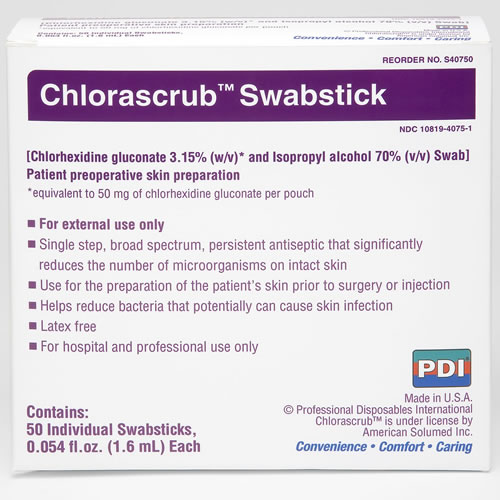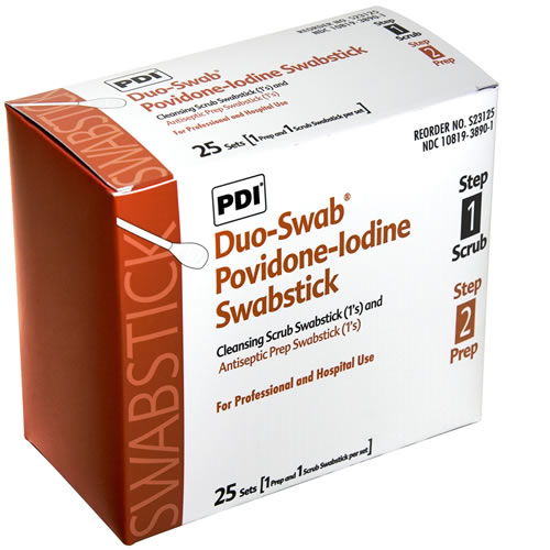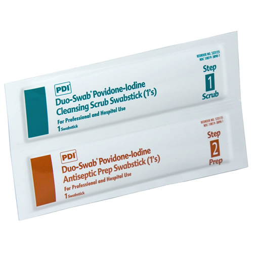 Here are images of some of the ones I’ve used. (PDI is only one of many brands.) I like sterile swab sticks best, so that they can be used with a no-touch technique, but swab pads can be used effectively, and tend to be the economical choice.